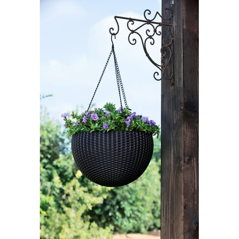 Keter Round Resin 13 8 D Hanging Planters 2 Pack Brown Rattan Walmart Com