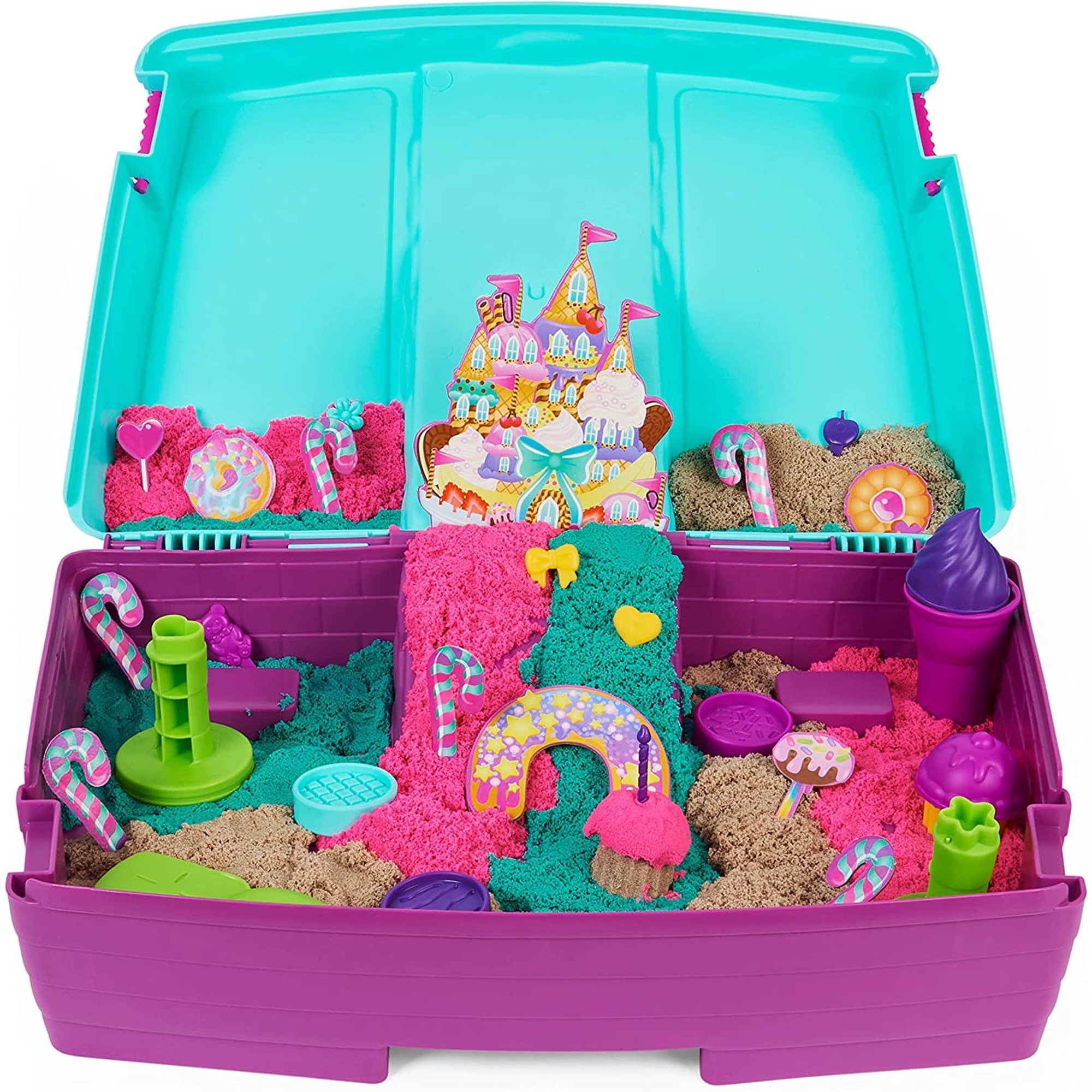 Kinetic Sand Sandyland With 2lbs Of Kinetic Sand Portable Playset With 15 Tools Made With Natural Sand Includes Scented And Colored Kinetic Sand Play Sand Sensory Toys For Kids Aged 3 And